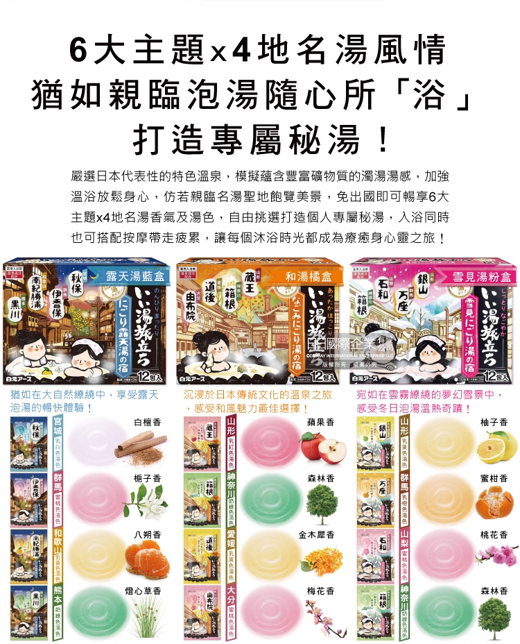 ●品名:名湯之旅潤澤香氛濁湯型溫泉入浴劑