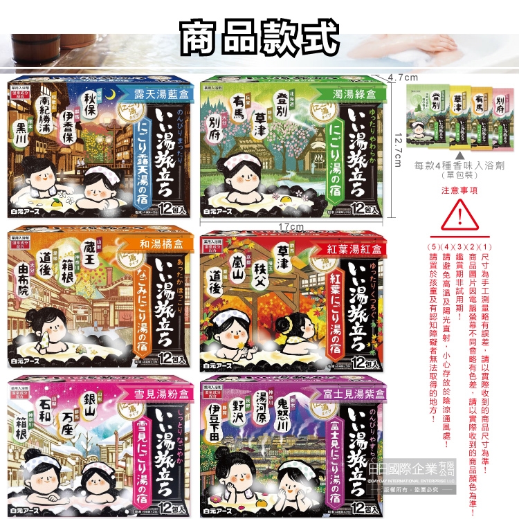 ●款式:露天湯藍盒、和湯橘盒、雪見湯粉盒、濁湯綠盒、紅葉湯紅盒、富士見湯紫盒。