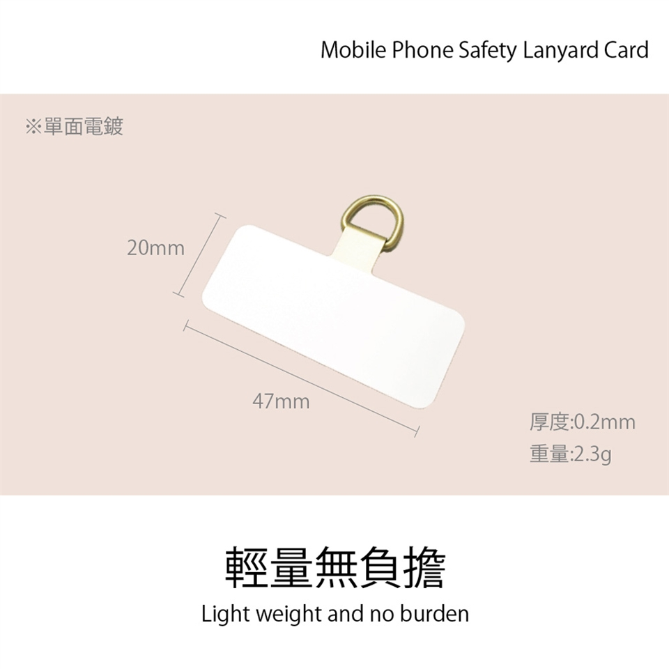 掛繩通用墊片可置入於手機殼內,連接手機本身與掛取配件