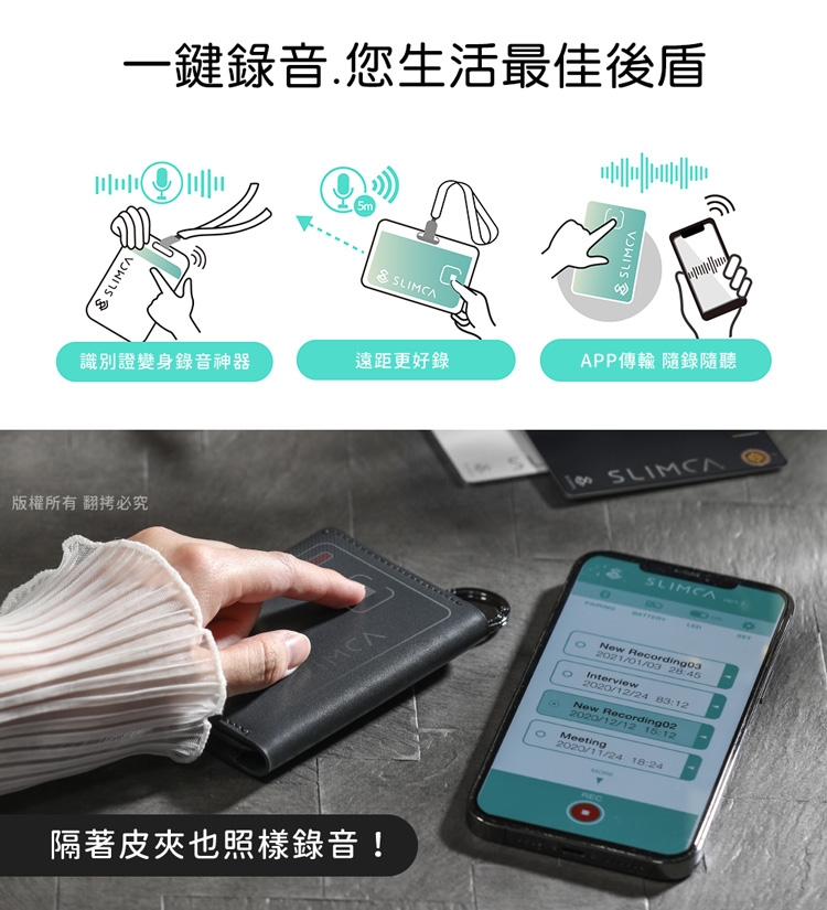--錄音/儲存兼具,2mm 極致輕薄,方便攜帶於皮夾、識別證套裡 --
