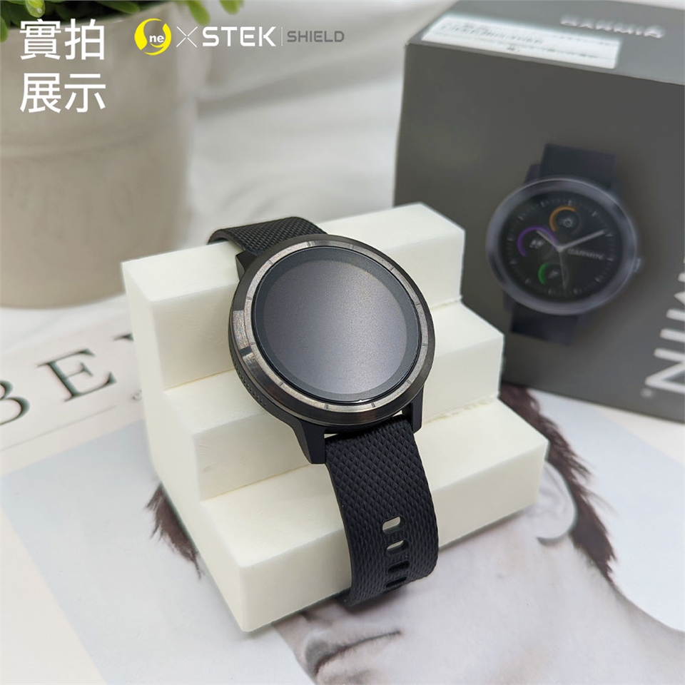 先以酒精棉片清潔螢幕,再用擦拭布擦乾,最後用除塵貼黏起灰塵;待孔位正確,黏合固定住,用刮板將膜撫平,小心撕除最上層表面離型膜,並撫平四周貼合
