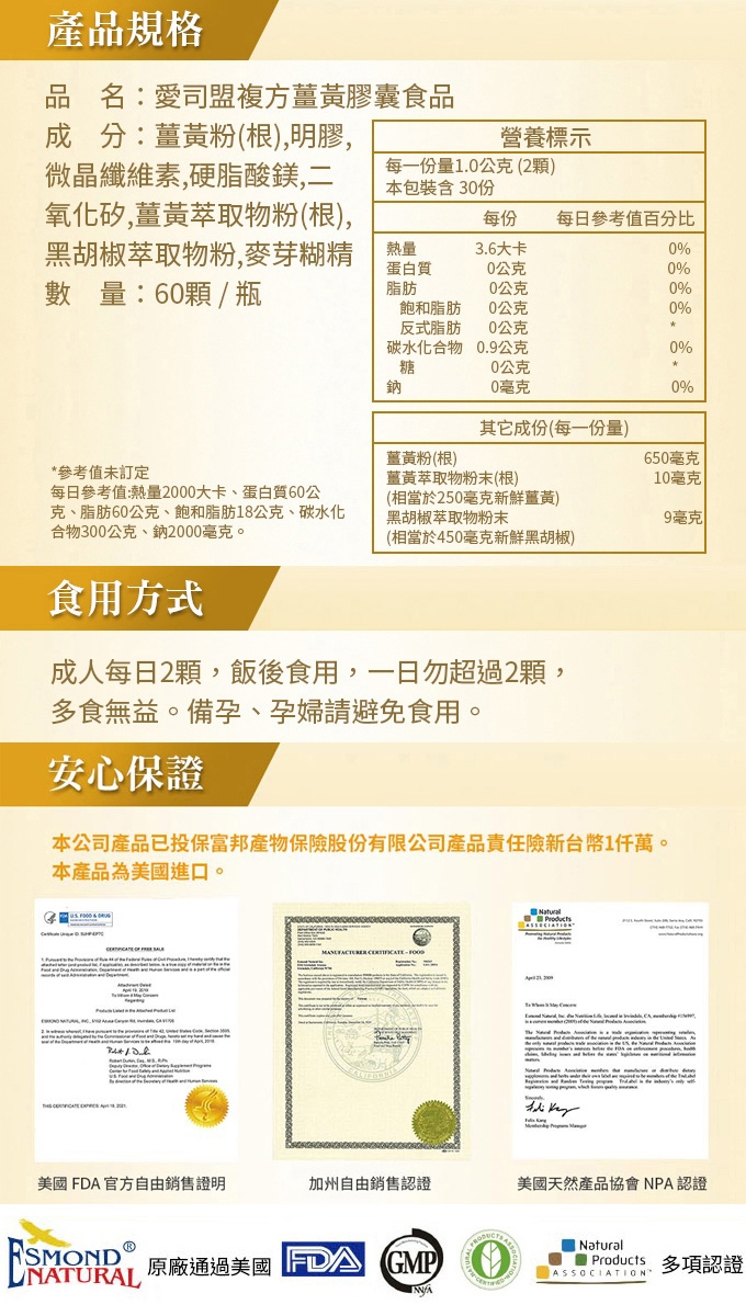 ◆製造廠:ESMOND NATURAL INC. IRWINDALE, CA 91706 U.S.A 製造廠