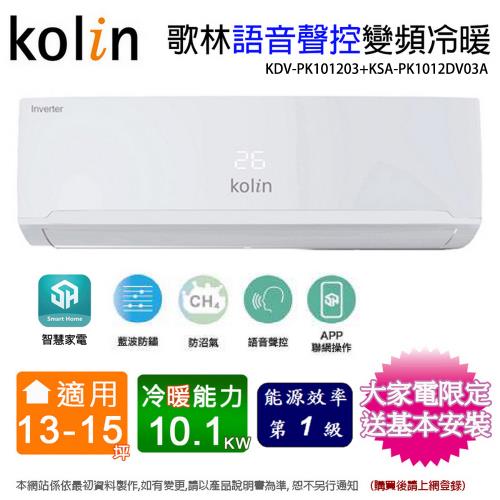 Kolin歌林13-15坪一級變頻語音聲控冷暖分離式冷氣KDV-PK101203+KSA-PK1012DV03A~含基本安裝+舊機回收