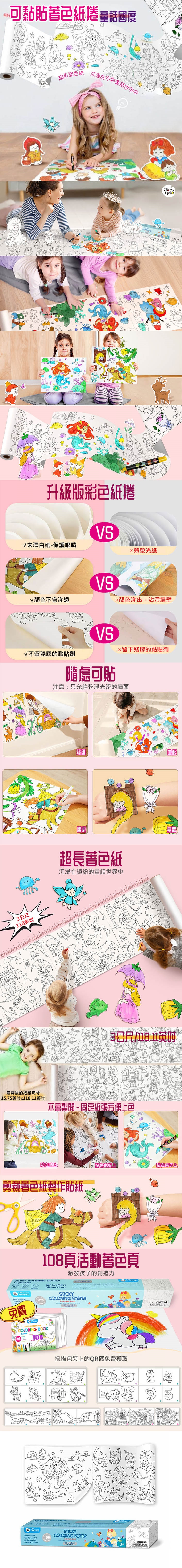 【品名】300公分可黏貼著色紙捲-童話國度