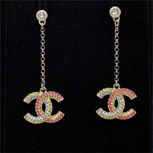 【CHANEL】香奈兒 繽紛水鑽CC LOGO長鍊垂墜耳環 淡金 - AB9871B09920NL749