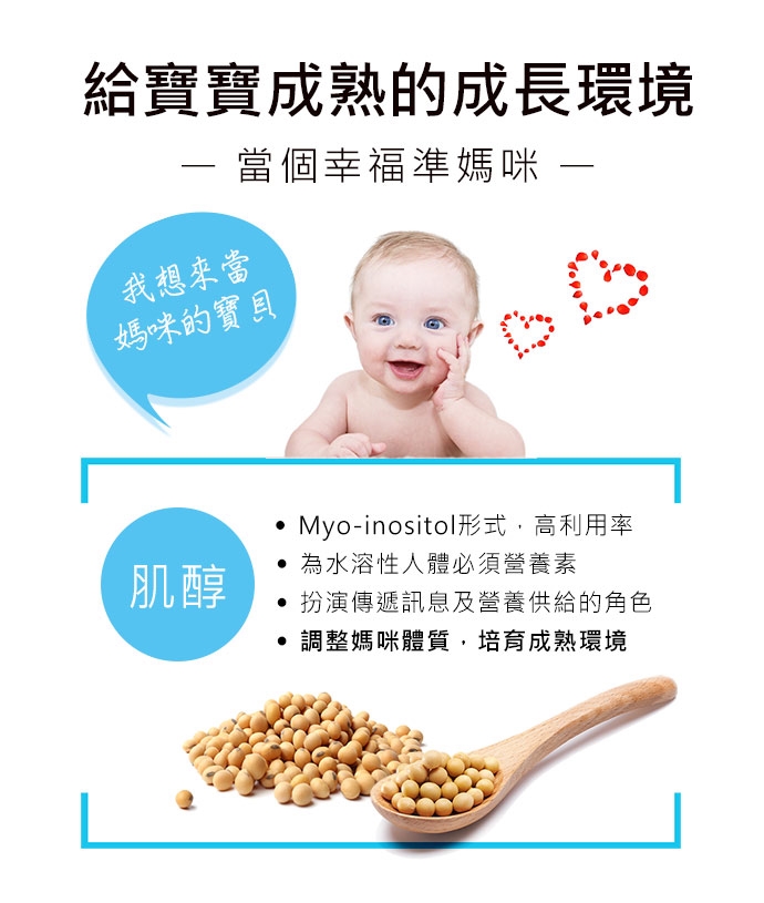 肌醇是一種親脂性的水溶性物質,是人體不可獲缺的營養素。肌醇在體內扮演著傳遞訊息及供給營養的角色。它不僅可以幫助新陳代謝;亦可調節生理機能,給予女性調整體質,幸福自然來報到。