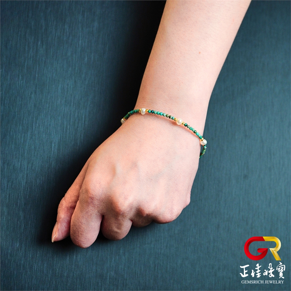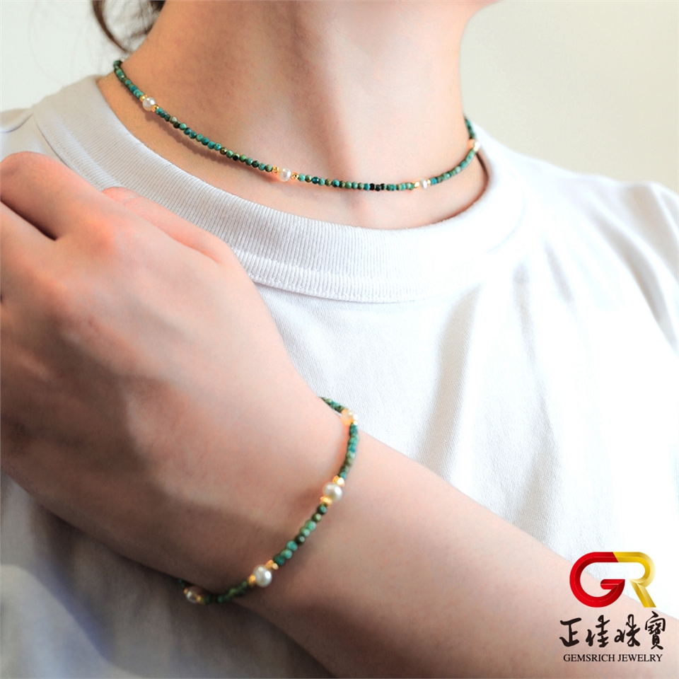 天然淡水珍珠 極細綠松石 珍珠項鍊 珍珠手鍊 珍珠套組|925銀