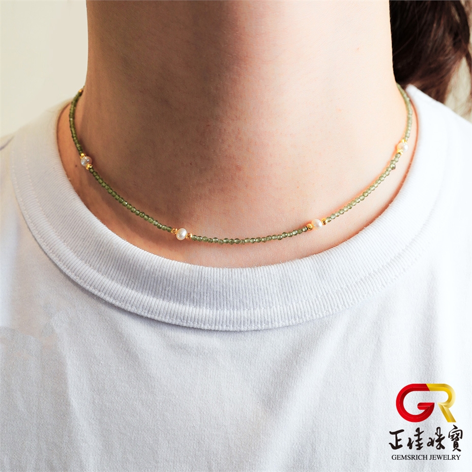 天然淡水珍珠 極細綠磷灰 珍珠項鍊 珍珠手鍊 珍珠套組|925銀