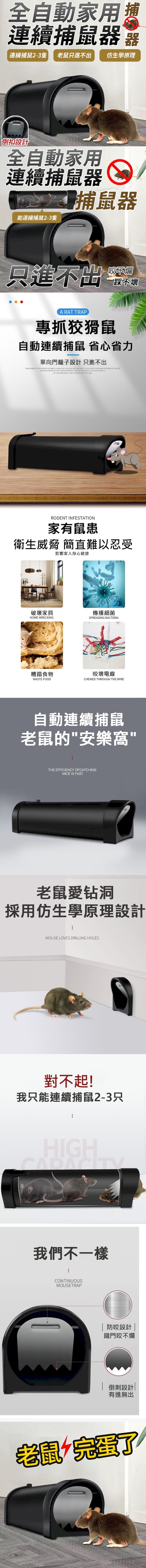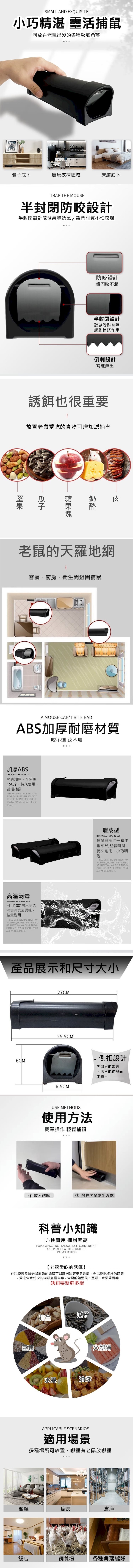 半密封設計,防逃脫老鼠只進不出,放置綉餌,無需投藥,鼠洞式捕鼠器,利用老鼠鑽洞天性,輕鬆捕獲老鼠,優質鐵門老鼠咬不爛,ABS壁面厚實耐重壓,可連續捕捉2~3隻老鼠,不用擔心老鼠脫逃