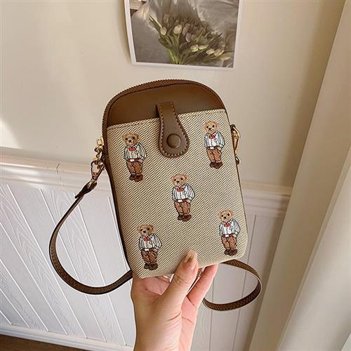 【巴黎精品】手機包帆布手拿包-側背刺繡小熊拼接女包包3色a1ev25