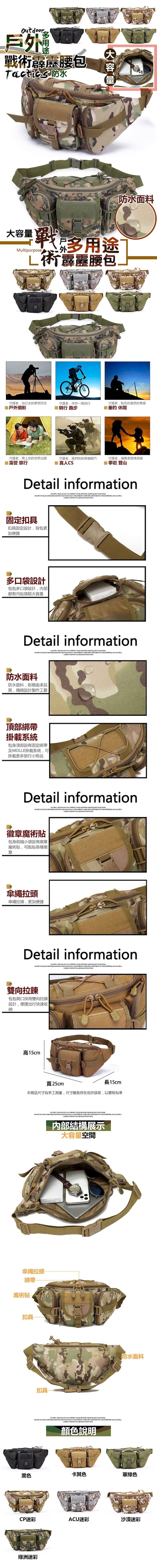 新升級超大容量,整齊收納,防潑水面料,耐磨耐髒,結實抗撕裂,多層結構暗袋,方便分類,主袋大開口設計,輕鬆拿取物品,雙開拉鍊,滑順開合不卡頓,背帶長短可調,多種配戴方式,隨心更換,方便實用,適用於戶外運動、徒步登山探險等
