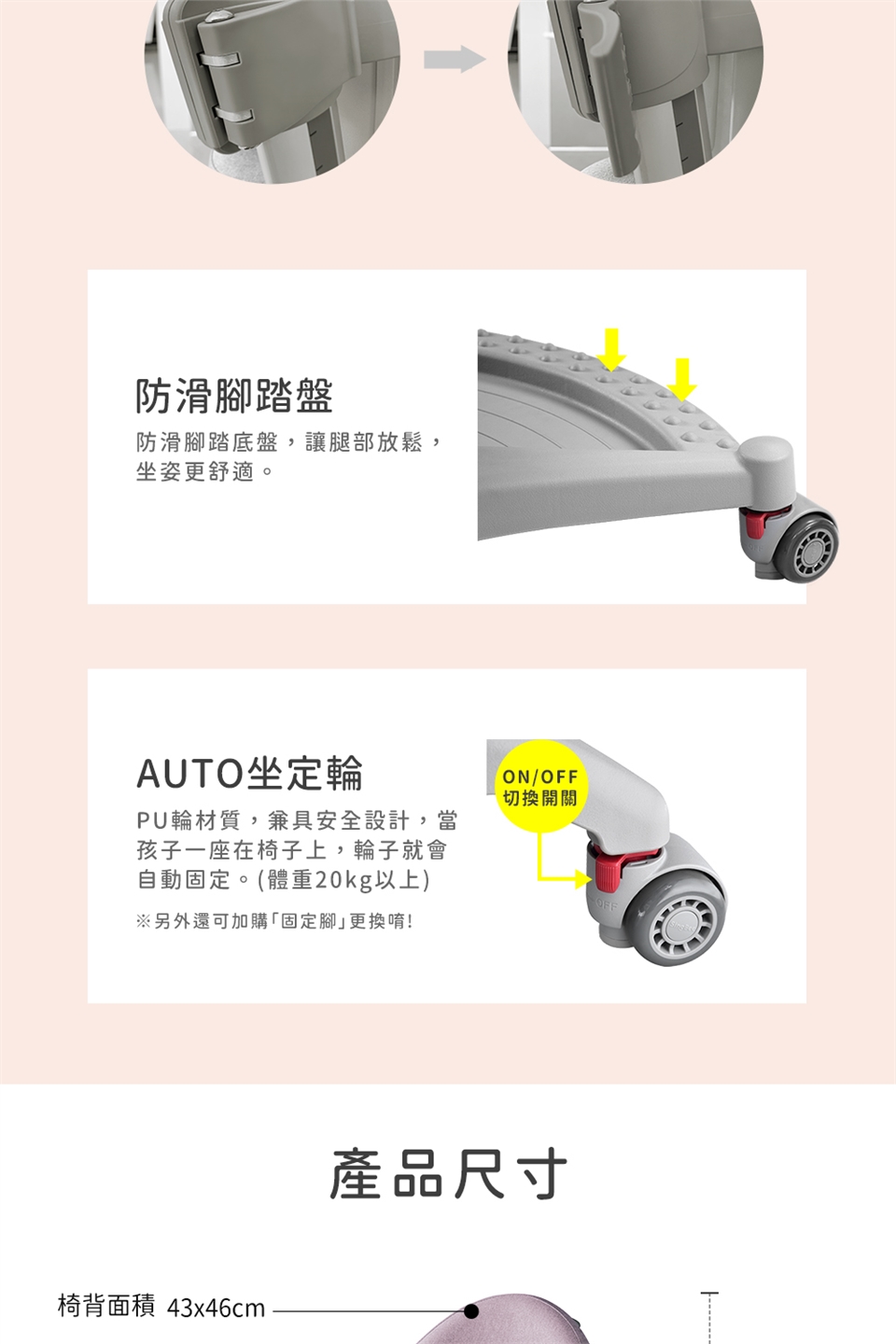 ◆ 自動切換固定椅輪,加強孩子坐的安全性