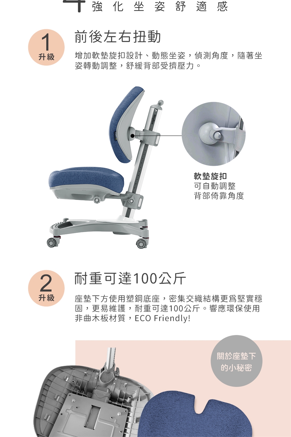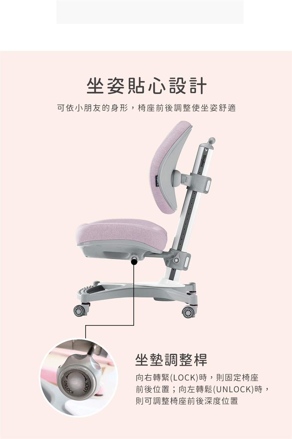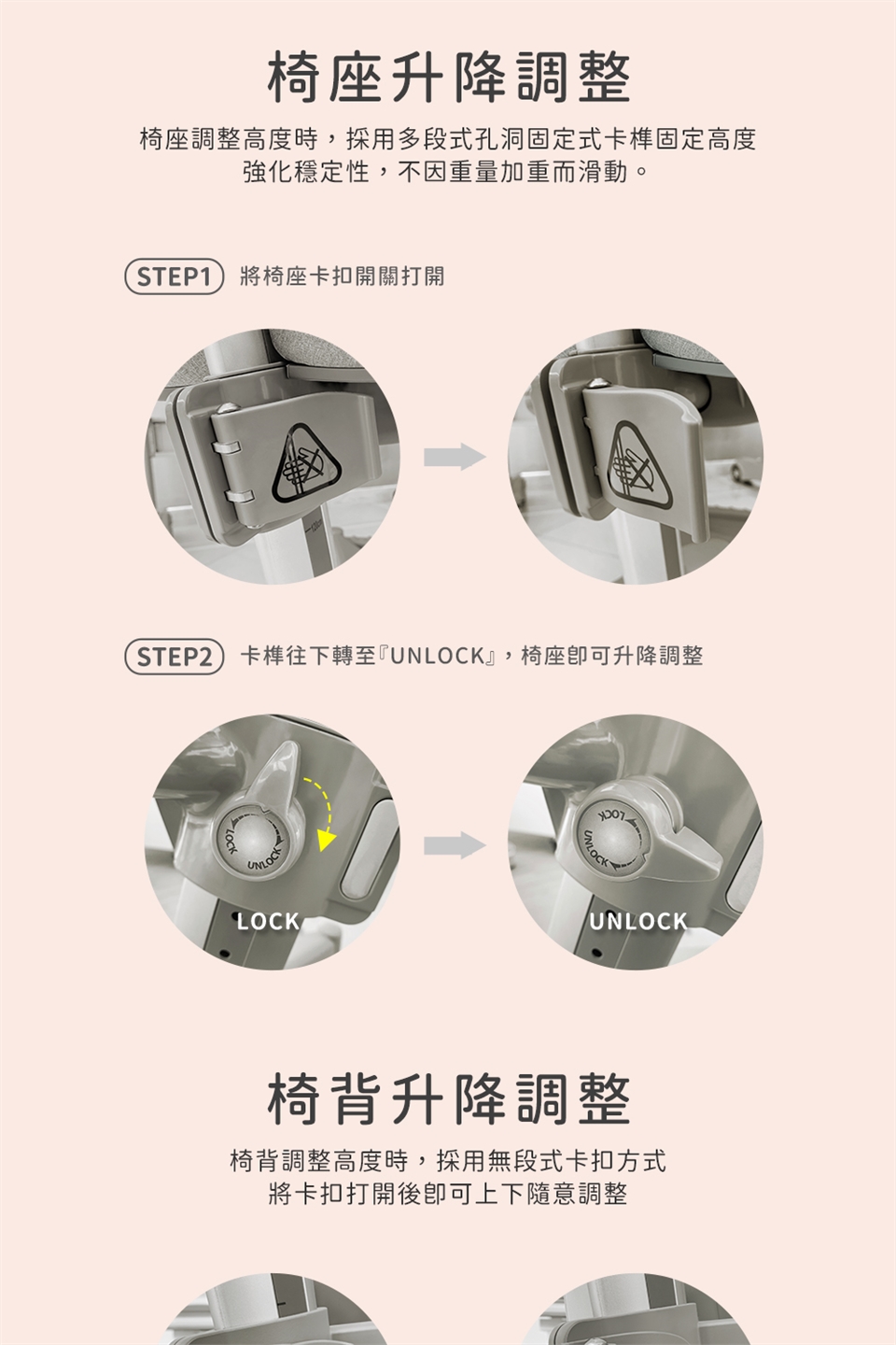 ◆ 椅背可依支撐需求做高度調整