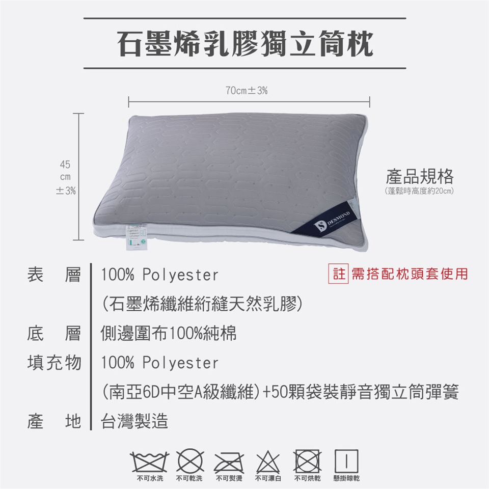 需搭配枕套使用/不可水洗/ 不可乾洗 /不可熨燙/ 不可漂白 / 不可烘乾/懸掛晾乾