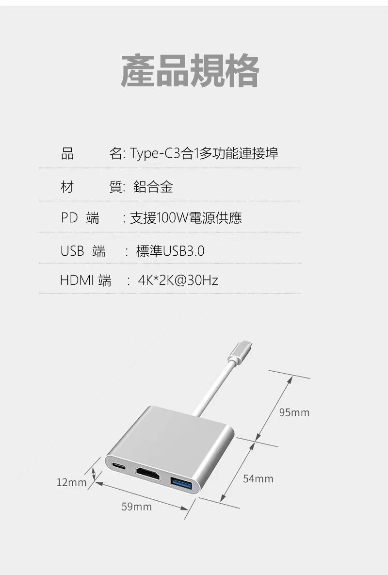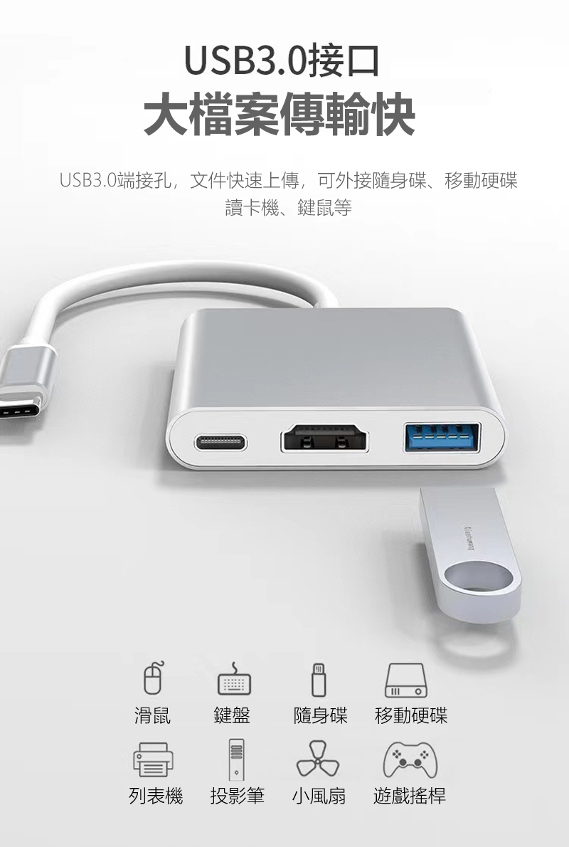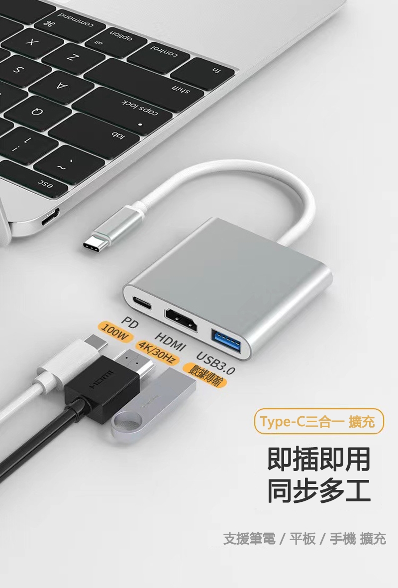 ◆3大介面擴充,USB3.0+HDMI +PD快充