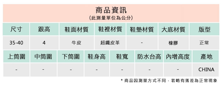 2.鞋類商品依功能及用途之不同,鞋底各有其止滑係數之個別不同,使用鞋類商品請用於正常平坦之路面,非雨鞋或雨靴類商品,請避免穿著於下雨濕滑路面上行走。