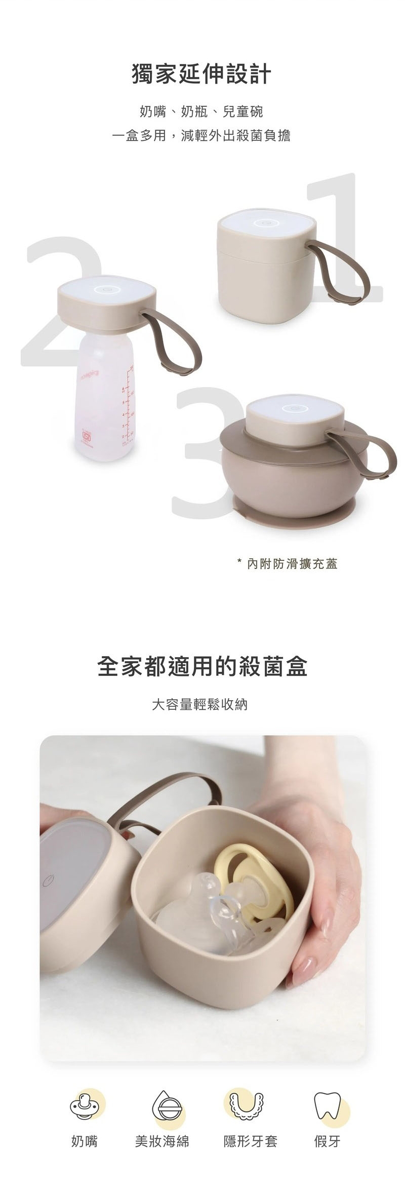 - 不擴充大容量:3顆奶嘴收納 、奶瓶 、兒童餐具