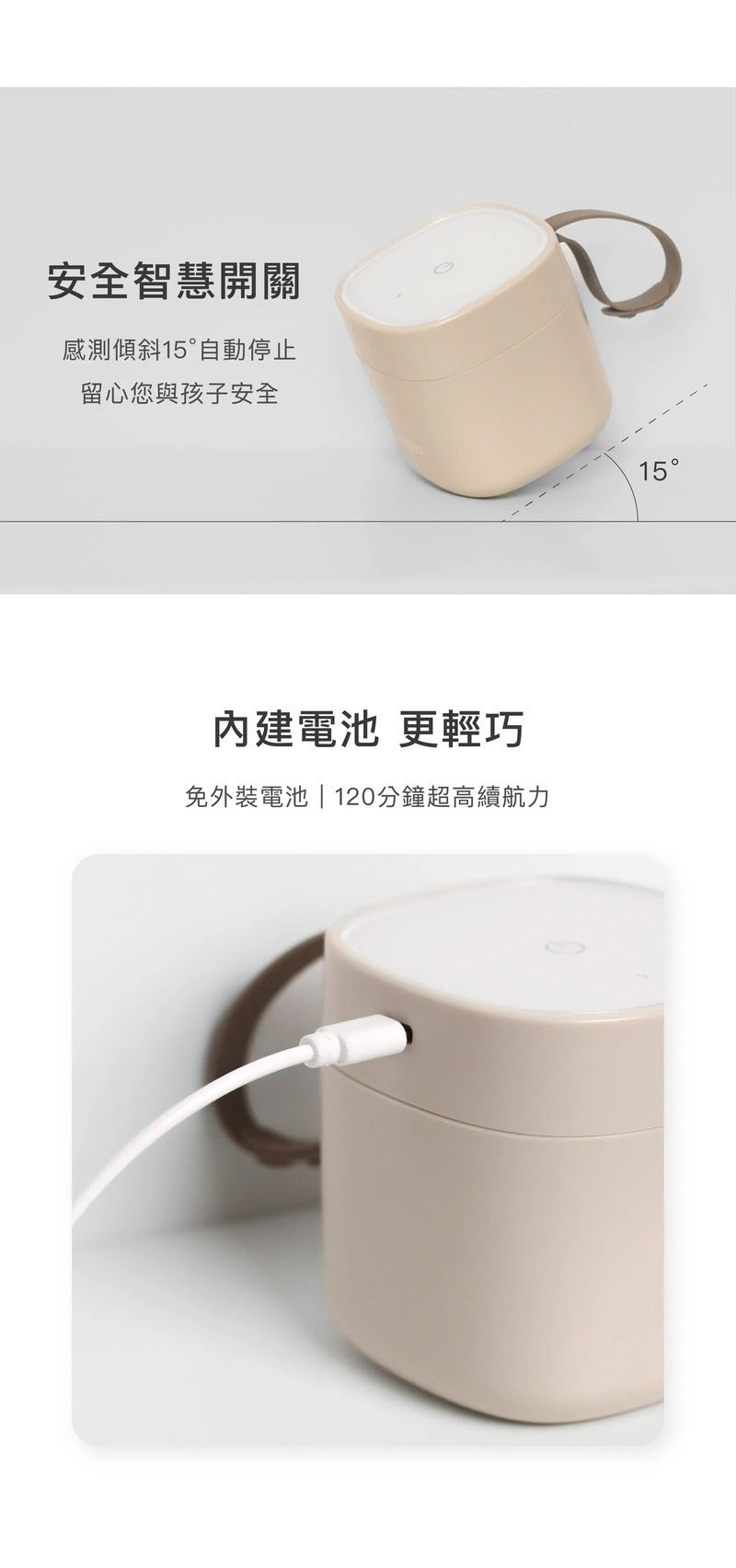 - 內建高續航電池:續航120分鐘 、USB快速充電