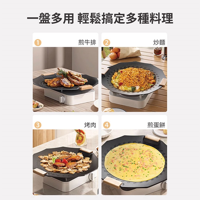 ※使用時,採用中小火即可,待烤盤表面溫度溫熱後,即可開始使用。