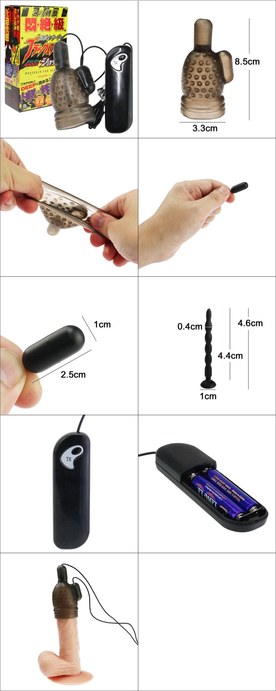 尺寸:約8.5×3.3×3.3cm;跳蛋約2.5×1×1cm,馬眼棒約4.6×1×1cm(可插入部分約4.4cm,直徑約0.4cm)