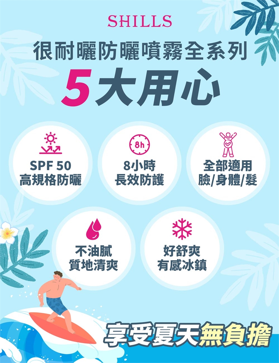3. 為保持防曬效果,噴塗量要足夠,並請1-2小時内補噴(特別是皮膚出汗或者是用毛巾擦拭後,請根據需要來補噴)