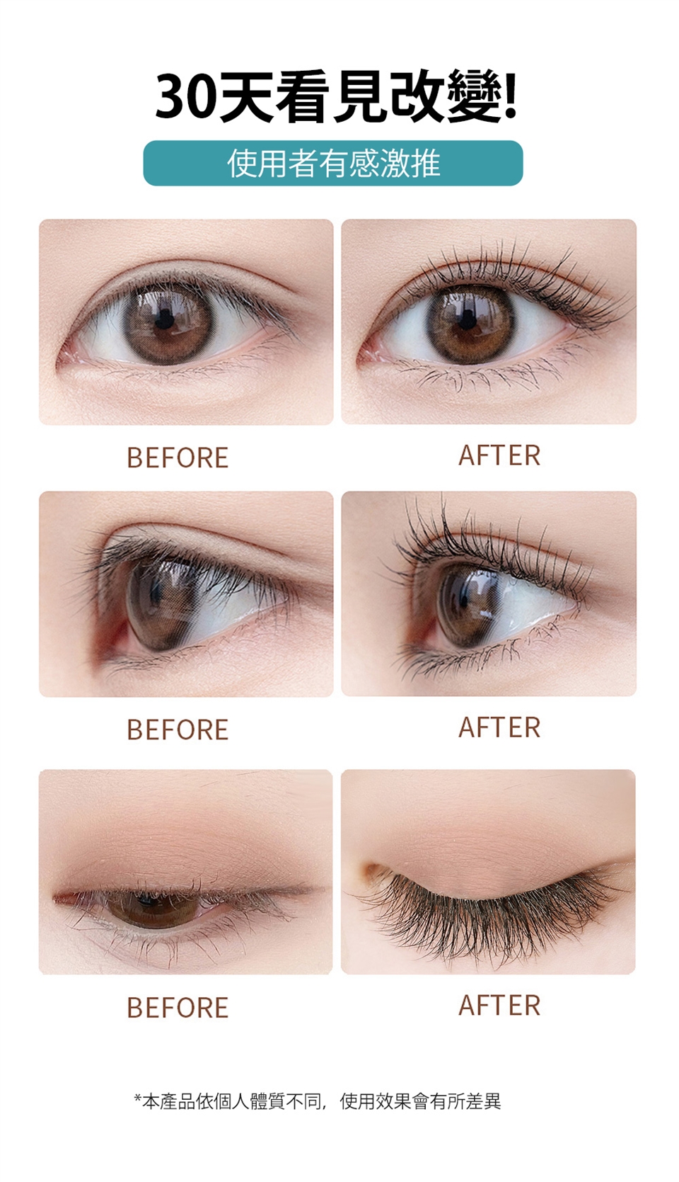 取適量輕輕均勻塗抹於上下睫毛根部。