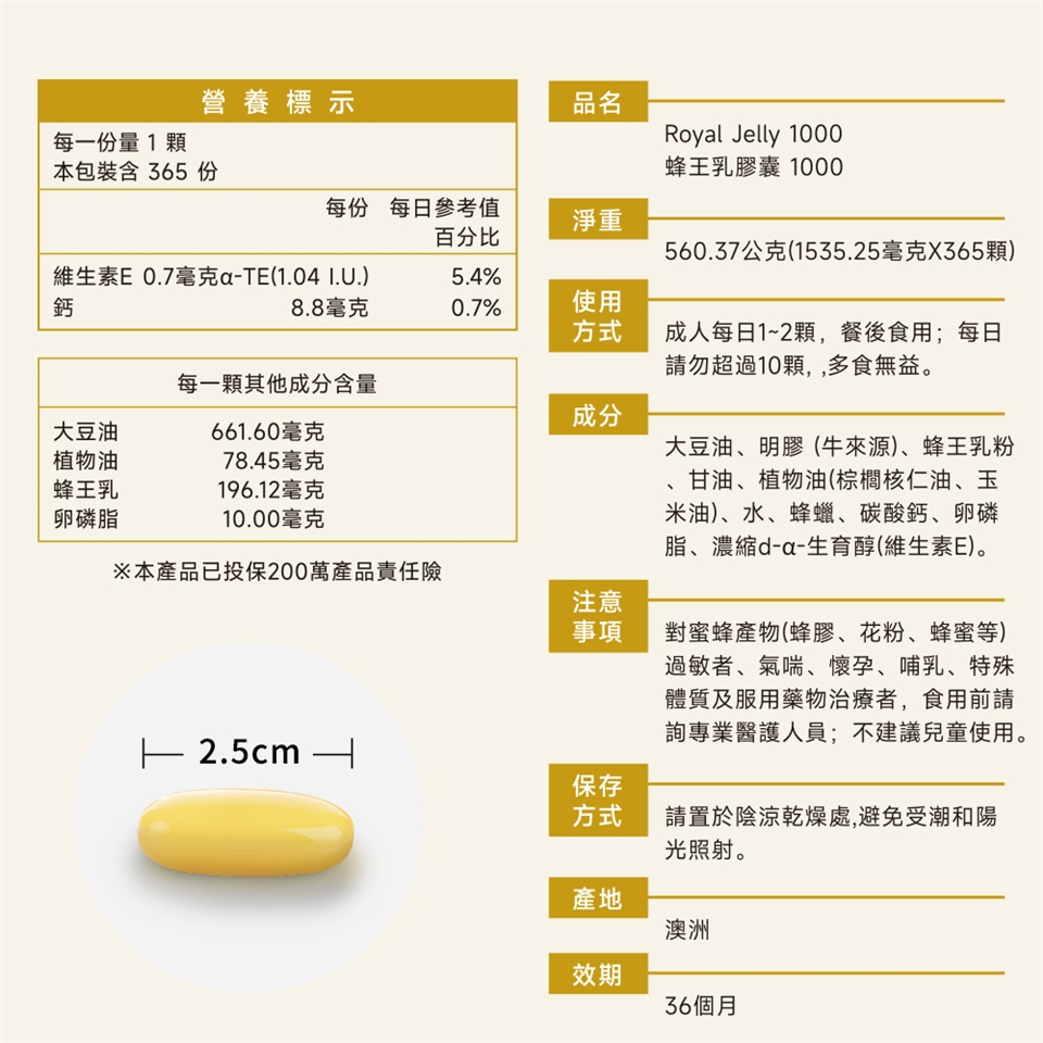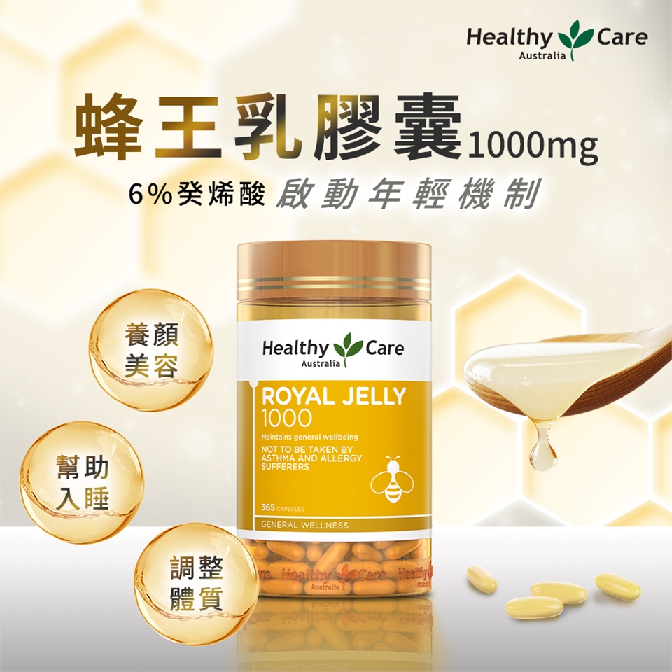 Healthy Care 澳洲蜂王乳膠囊1000 (365顆入) 效期:2026/11/30