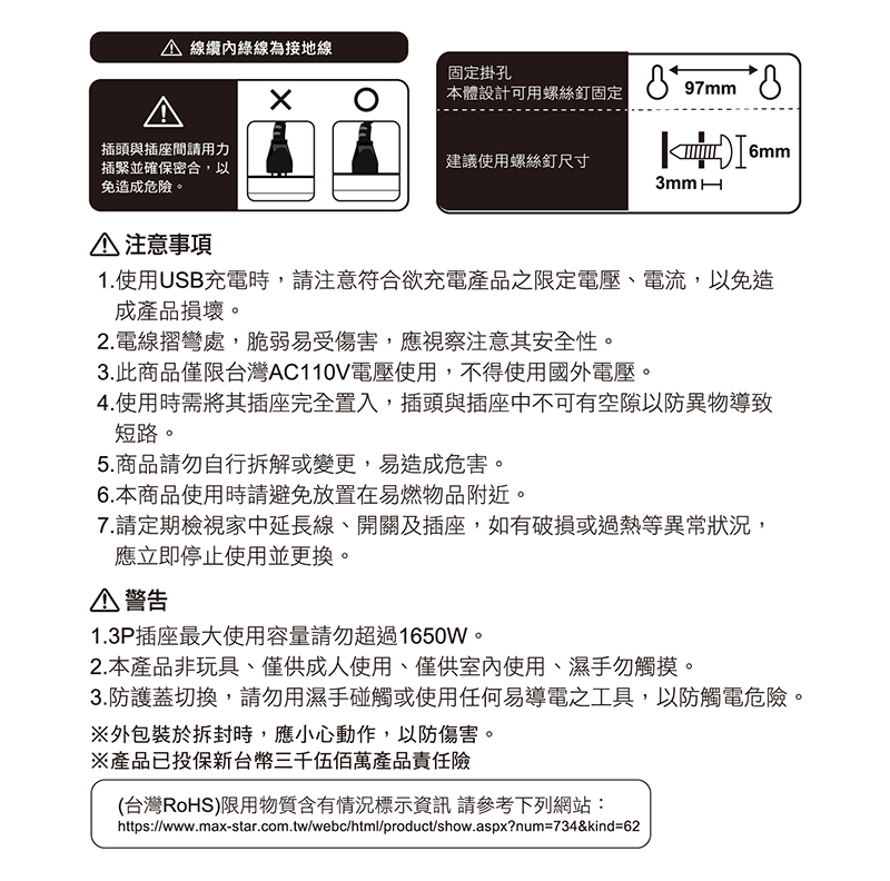 2.本產品非玩具、僅供成人使用、僅供室內使用、濕手勿觸摸。