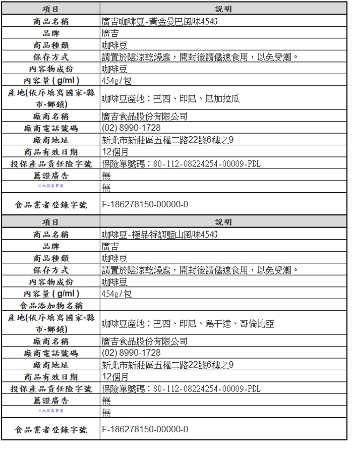 ◎ 規格:454g/包