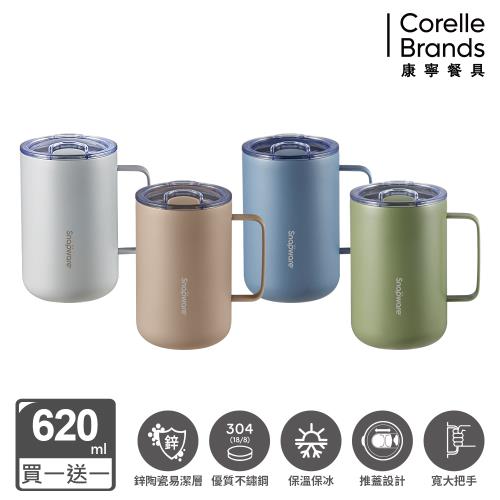 買一送一【美國康寧】Snapware 鋅light輕瓷不鏽鋼保溫保冰辦公杯620ml (四色任選)