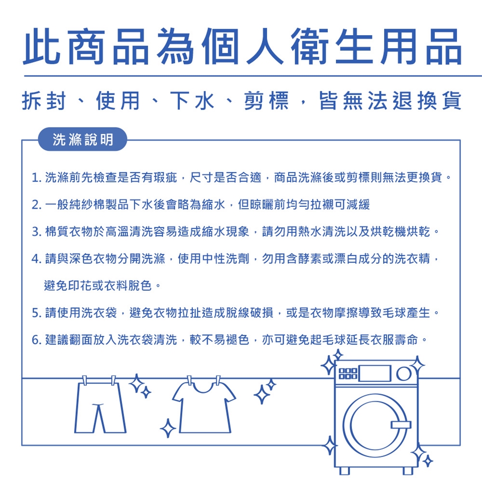 ※ 此商品為各人衛生用品,請先確認尺寸大小,商品洗滌後或剪標,則無法退換商品 ※