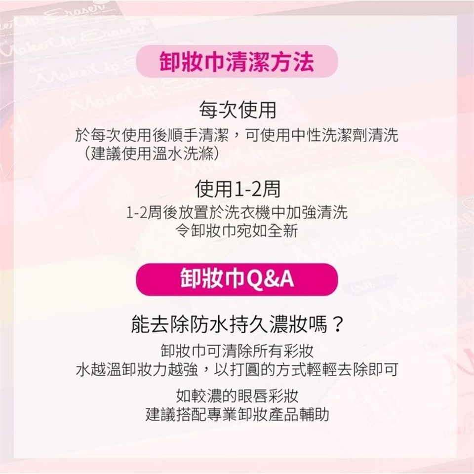 使用短毛面擦拭臉上的彩妝,輕柔有效。