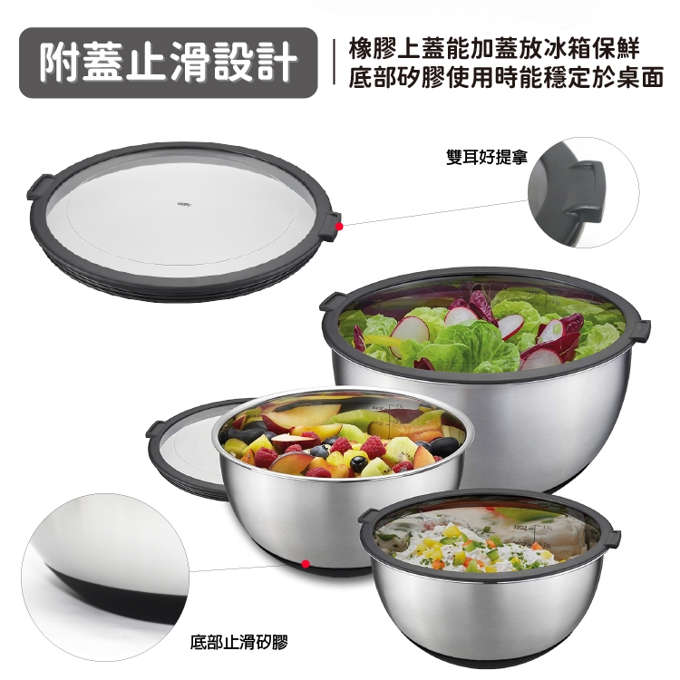 1.不鏽鋼盆附上蓋使食材可以放入冰箱味道不外露又衛生。