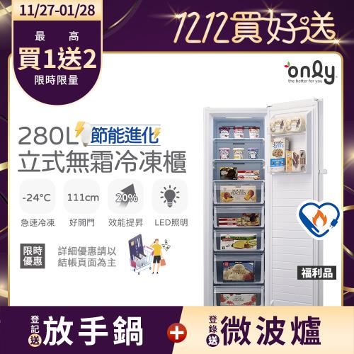 【團購/營養師愛用品牌】only 280L節能無霜冷凍櫃OU280-M02Z/OU280-M06Z福利品(年菜預購.水產.團購.鍋物.烤肉組囤貨)