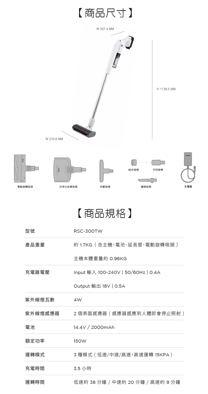 【日本Raycop】無線UV除蟎無刷直流馬達吸塵器 RSC-300TW
