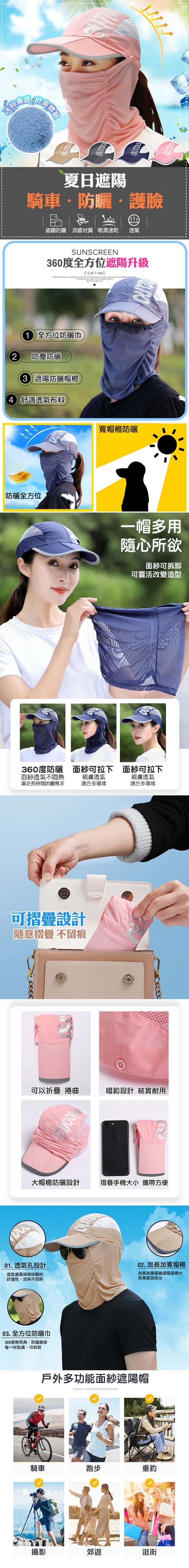 品名 : 可輕薄透氣可折疊輕便全臉防曬帽(O款)