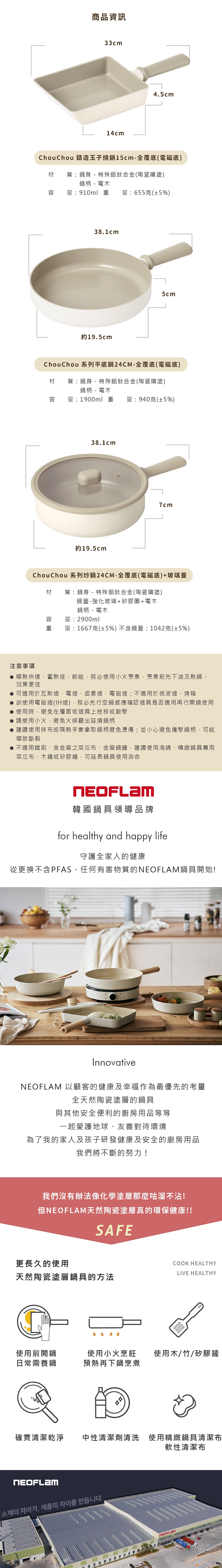 ●導熱快速、蓄熱佳,節能,務必使用小火烹煮,烹煮前先下油及熱鍋,效果更佳