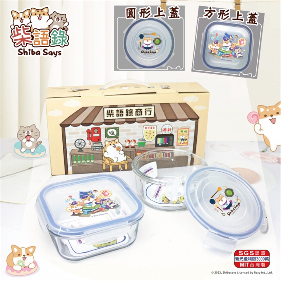 柴語錄-2入密扣式玻璃保鮮盒禮盒組700ml(一圓一方) R-100-1W+R-200-1W 台灣製
