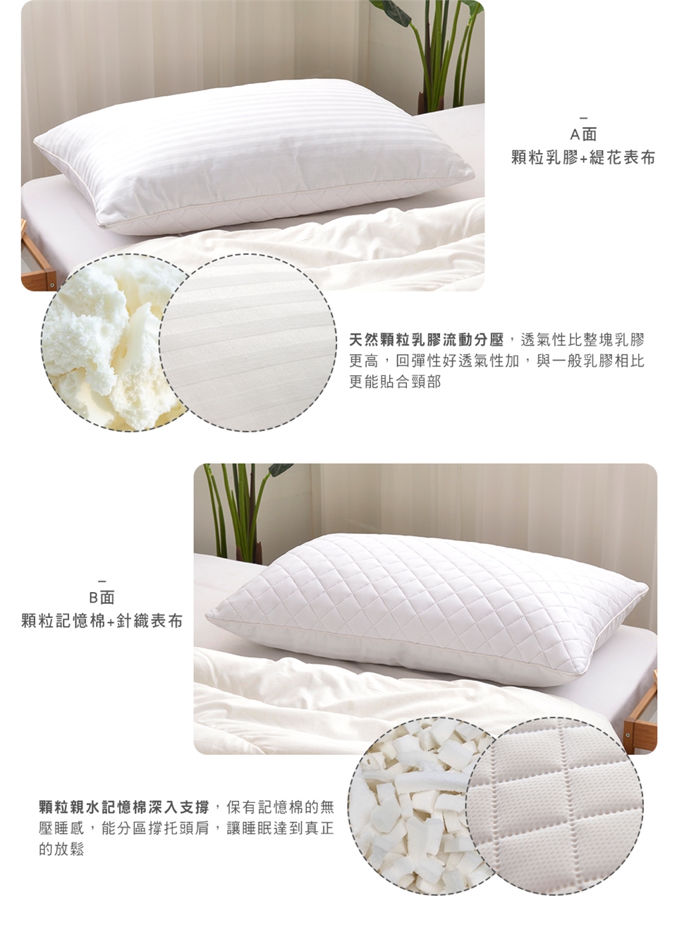 ◎材質:表布-100%聚酯纖維/填充物-顆粒乳膠1.2KG+充氣袋+親水記憶棉0.4KG