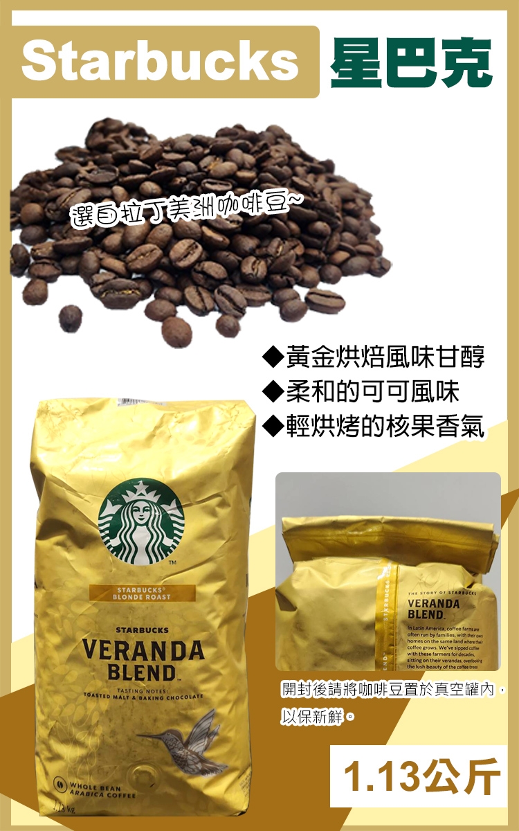 品名    Starbucks 黃金烘焙綜合咖啡豆 1.13公斤