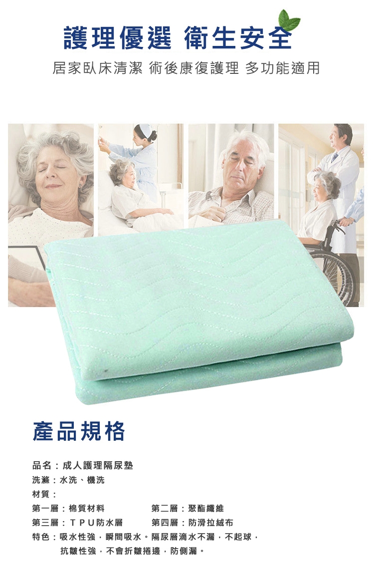 可達半個單人床,長者就算翻身也不怕漏。