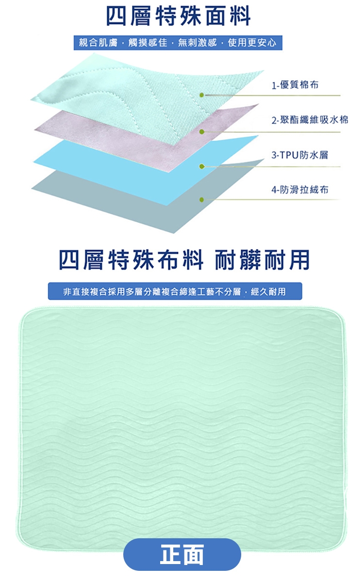 04.四層布料,親膚、吸水、防水、防滑面面俱到