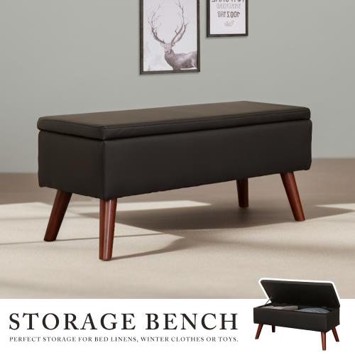 【Homelike】 喜家居掀蓋皮革收納椅凳-星辰黑(2407)