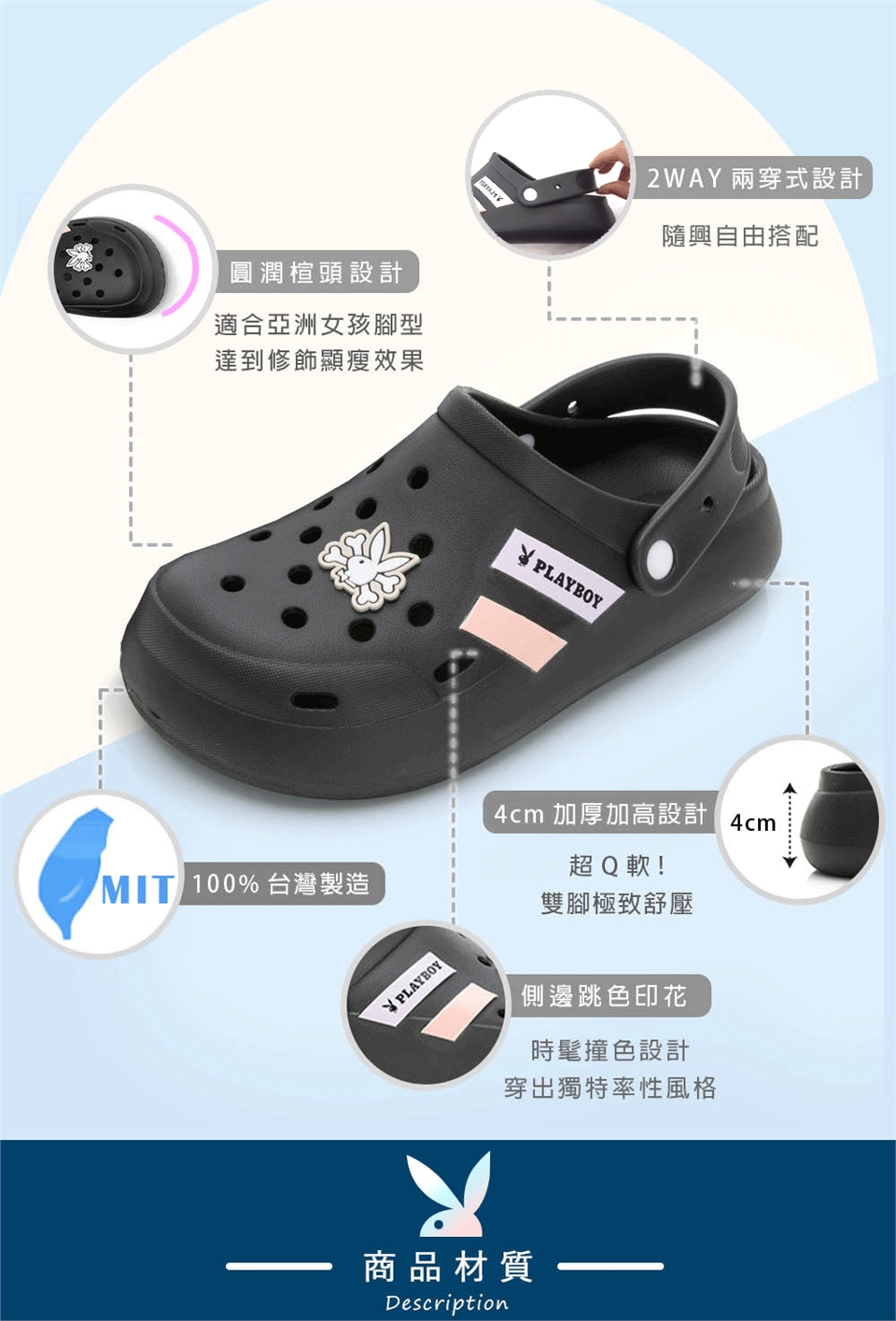 PLAYBOY 玩酷主張輕量防水2WAY洞洞鞋 |