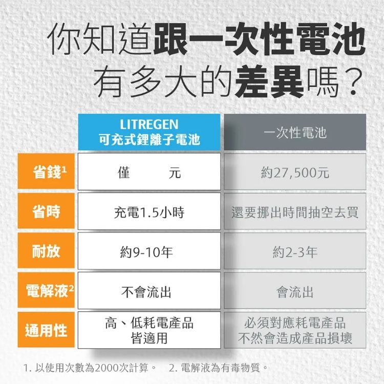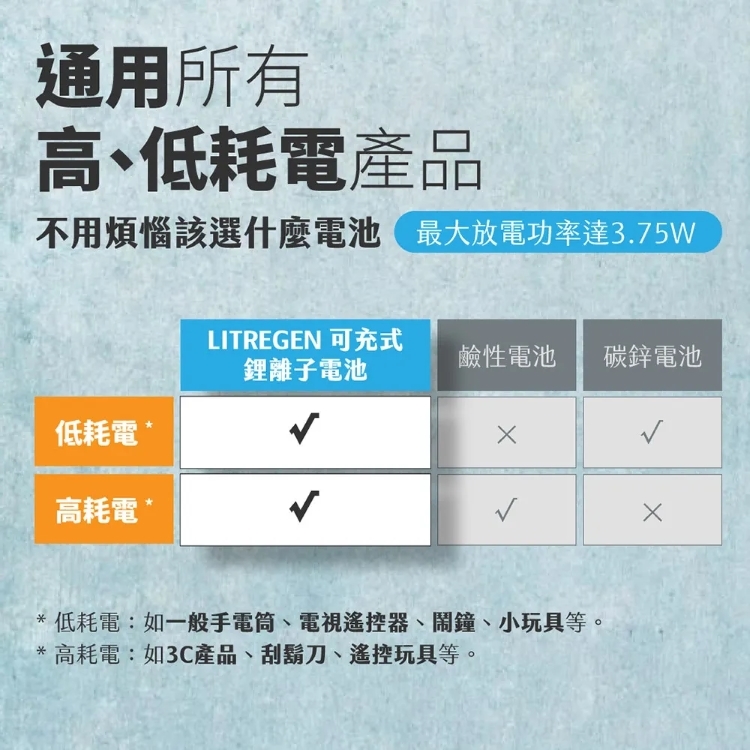同傳統乾電池相比,減少26%重量,電量相同更為輕巧