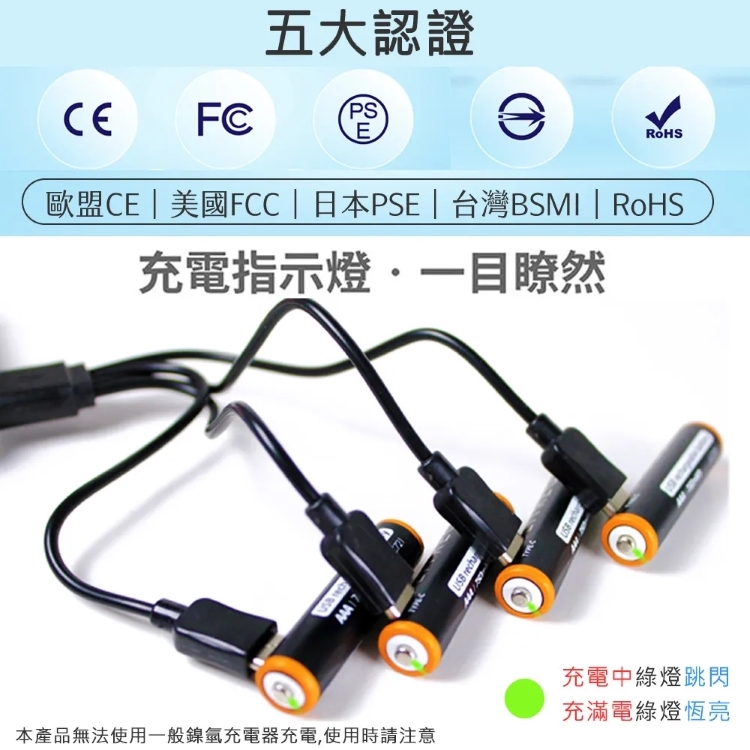 商品內容:USB可充式鋰離子電池*4 + Type C USB 一對四充電線*1