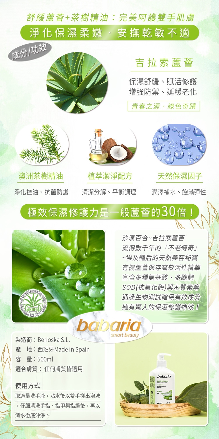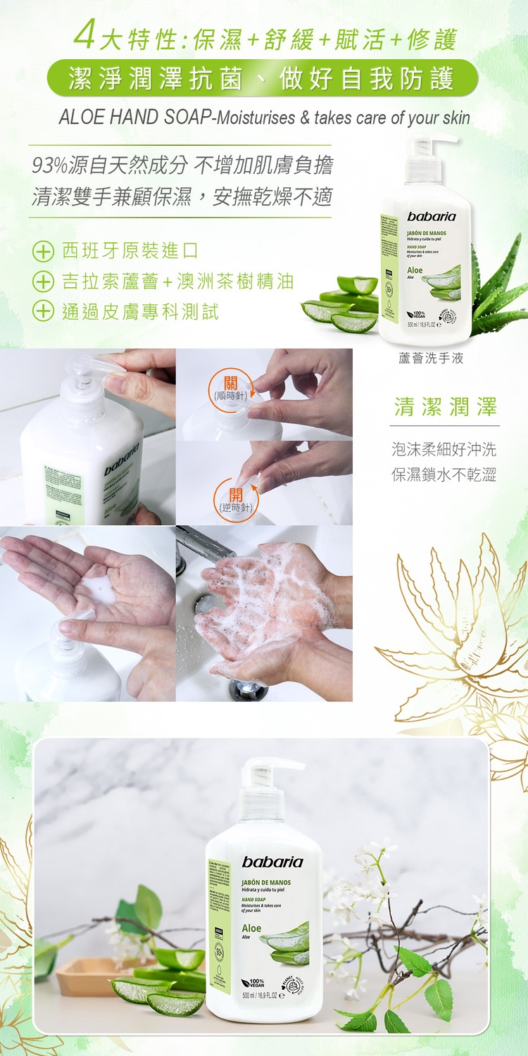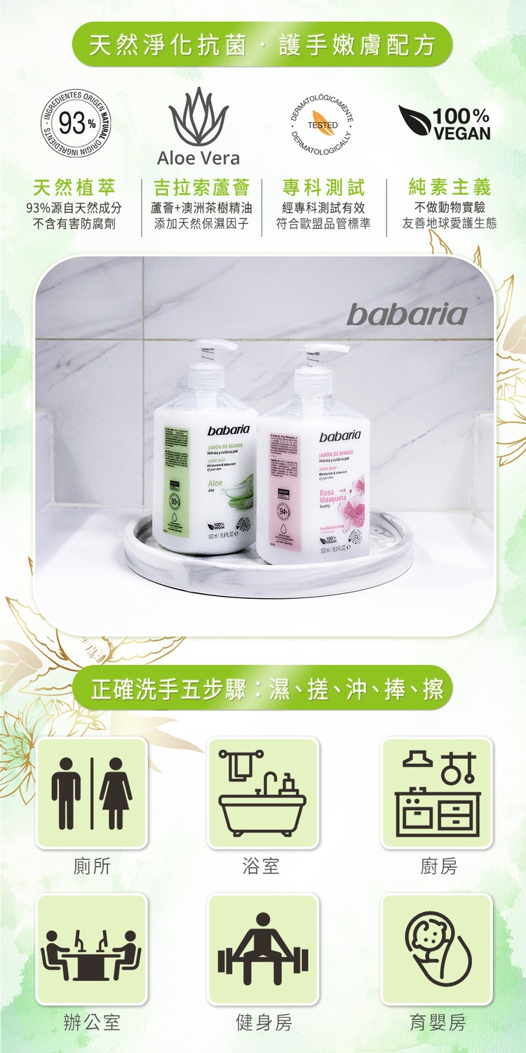 babaria 洗手液 500ml 任選4入-玫瑰果油/蘆薈 (茶樹抗菌配方)