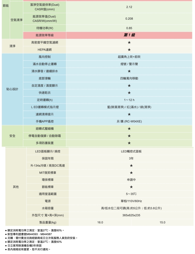 .除濕能力:11 (公升/日)