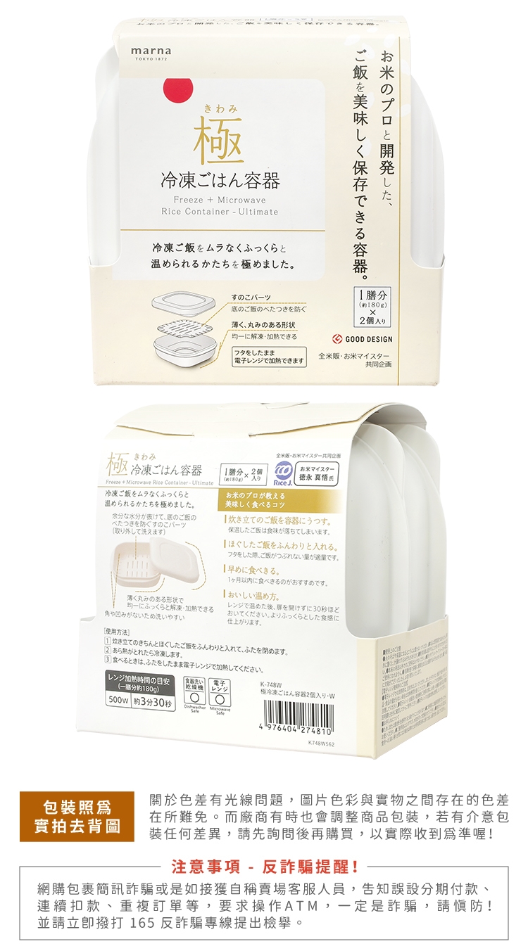 由MARNA與日本民間組織的日本米穀小賣商業組合「Rice Meister 米達人」專業級所共同開發:可冷凍微波的飯盒,能方便盛裝料理過的米飯、蔬菜,快速保存以減少美味流失,且加熱不麻煩。