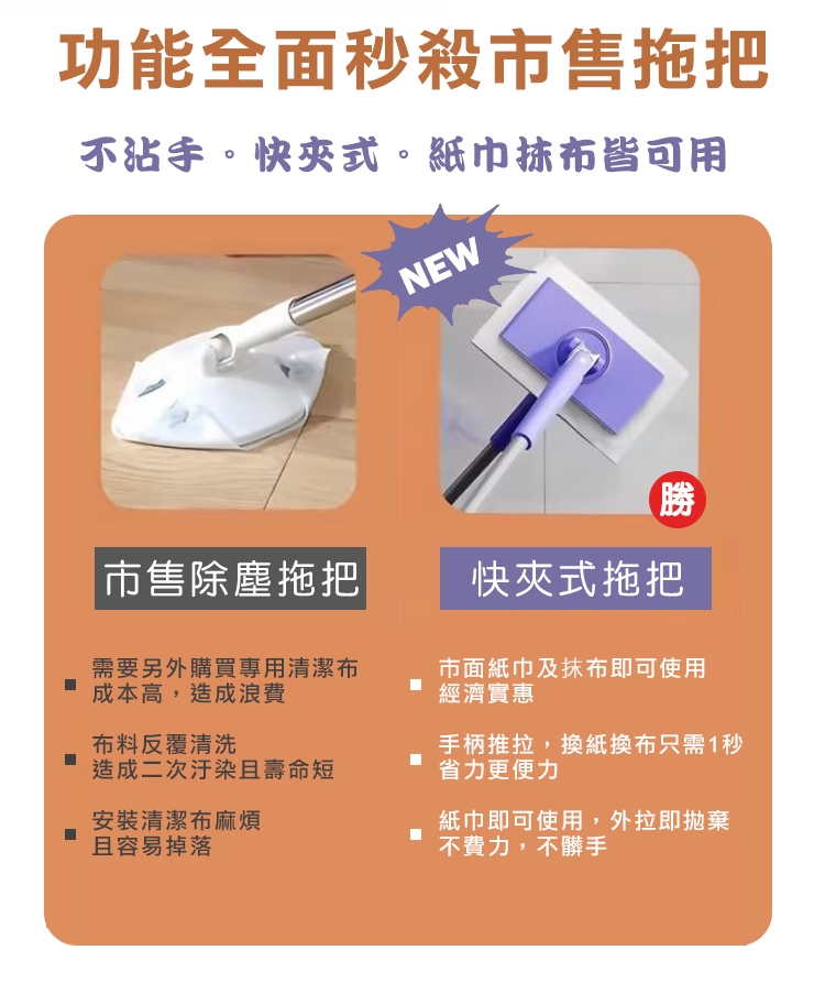 免手洗加長型快夾洗臉巾拖把